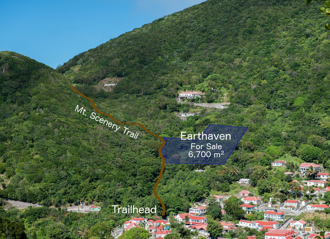 This is a special place to create your own private paradise. Such is Earthaven, a stunning parcel of Saban land that sits 1500 feet above sea level with amazing views of the ocean, Booby Hill, the Level and beyond to the neighboring islands. Filled with tropical foliage, Earthaven quietly straddles the Mt Scenery trail and the outer edges of Saba’s most charming and picturesque village, Windwardside.