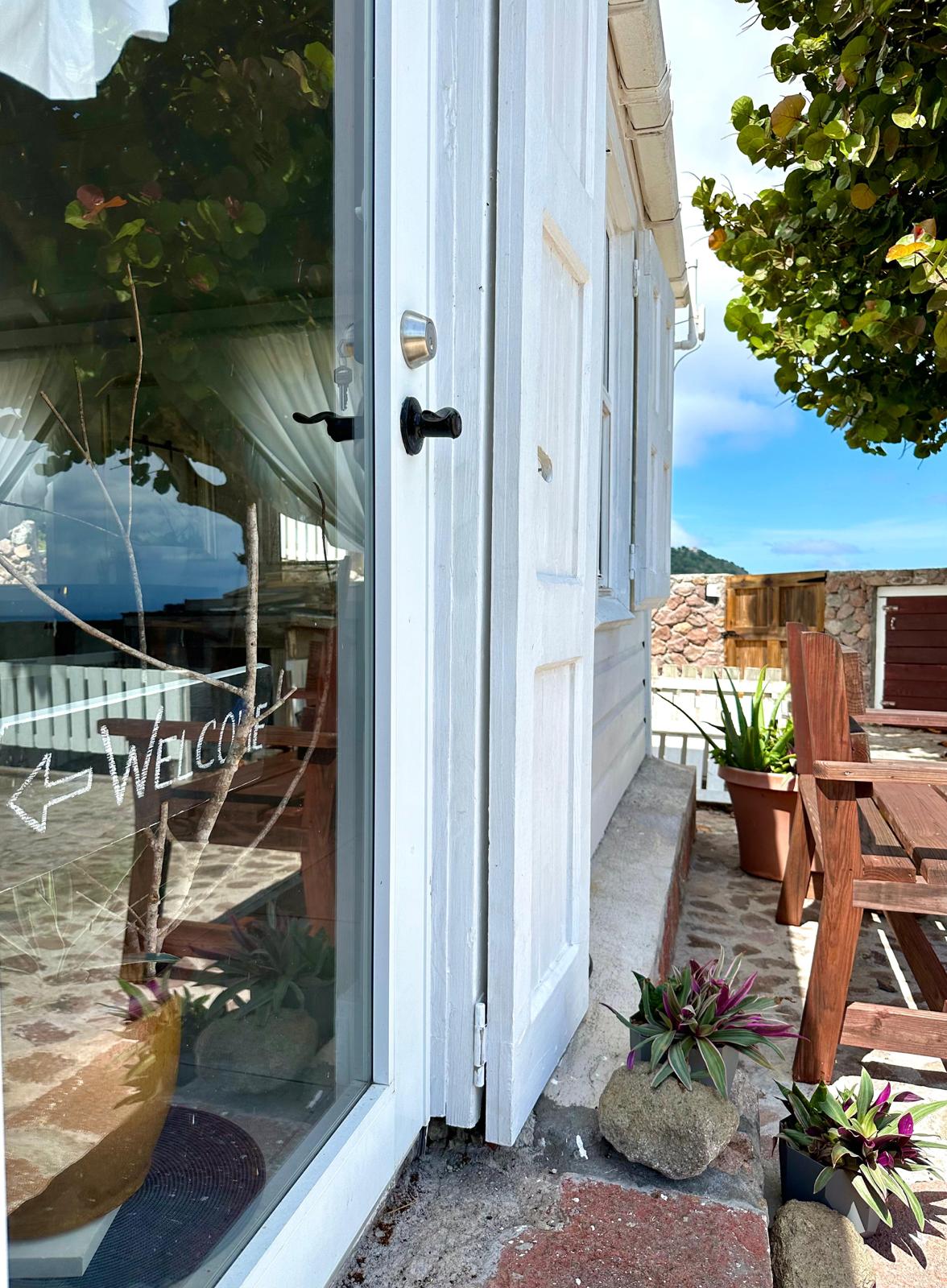 Novel Cottage is a newly renovated one-bedroom with stunning 160-degree views of the ocean and neighboring islands: Statia, St. Kitts, and Nevis — located in the charming one-time farming village of St. John’s.