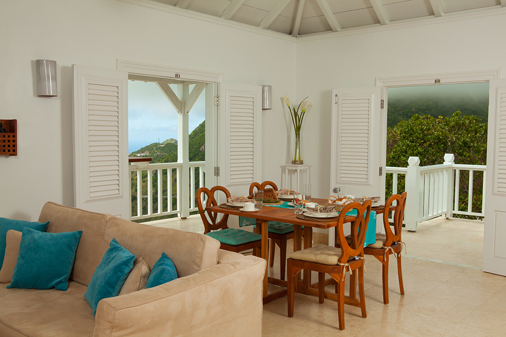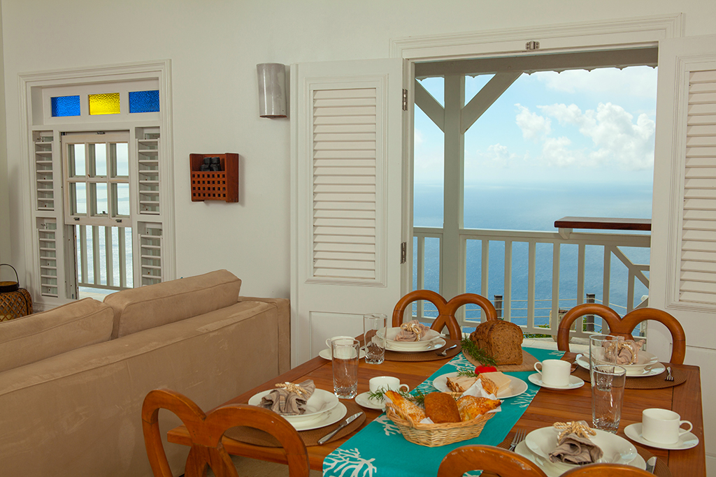 Perched on Saba’s most spectacular point, the views are breathtaking; all around you is surreal beauty. Sitting on the upper wrap-around veranda, you are surrounded by panoramic ocean views that stretch almost endlessly into the horizon. In the distance are the outer islands of Statia, St Kitts, Nevis and on a very clear day, Montserrat. Within your land views are the majestic Mount Scenery, Windwardside Village and the verdant undeveloped cliffs of Saba. Spyglass Villa is your own private paradise, yet just a 10 minute walk to the amenities of charming Windwardside.